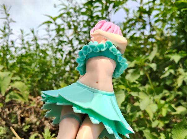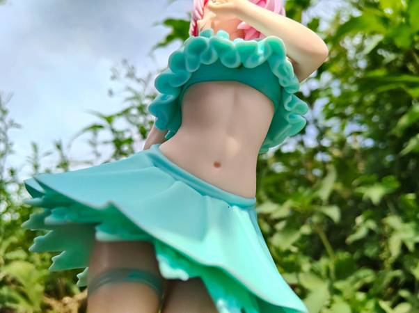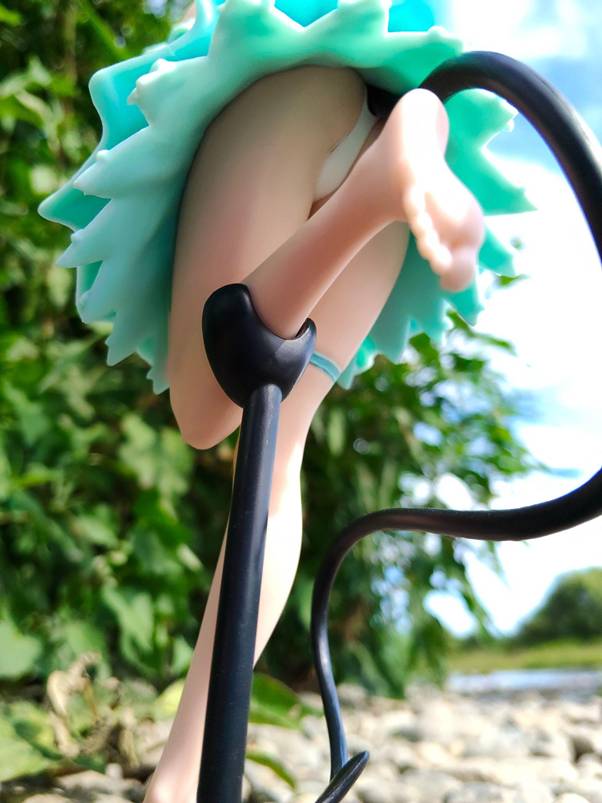 今回のフィギュアは、胸まわりの露出が低く意外とガードが固いのと、下半身のスカートもけっこう分厚い。