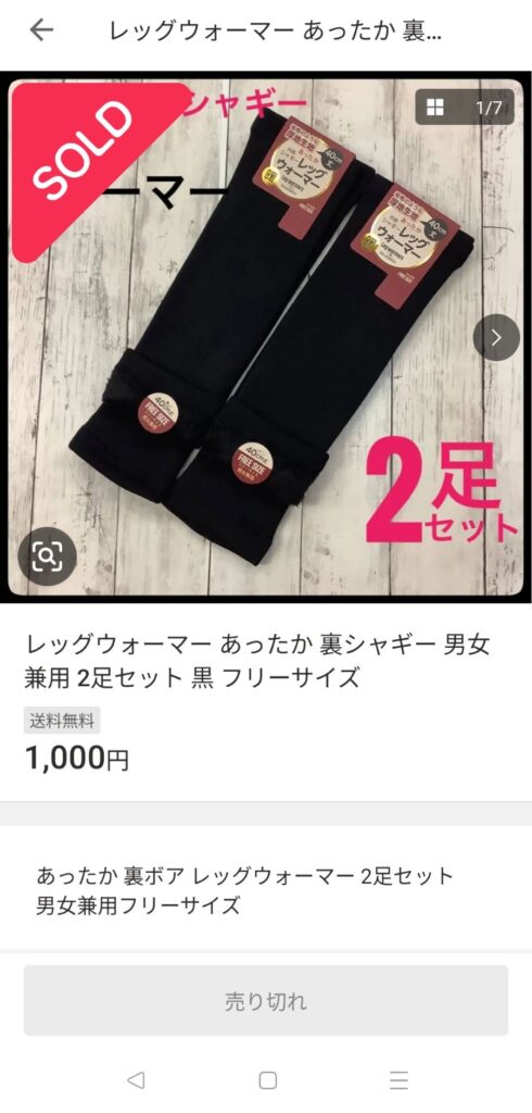 Yahooフリマのショップ売価だと、2足で1000円なので、1足あたり500円。