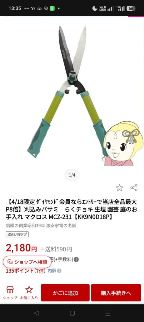 2. 草刈り用のハサミ(2,200円→1,100円)