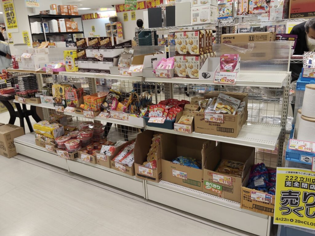カップめんやお菓子や調味料が少し残ってる感じですね。