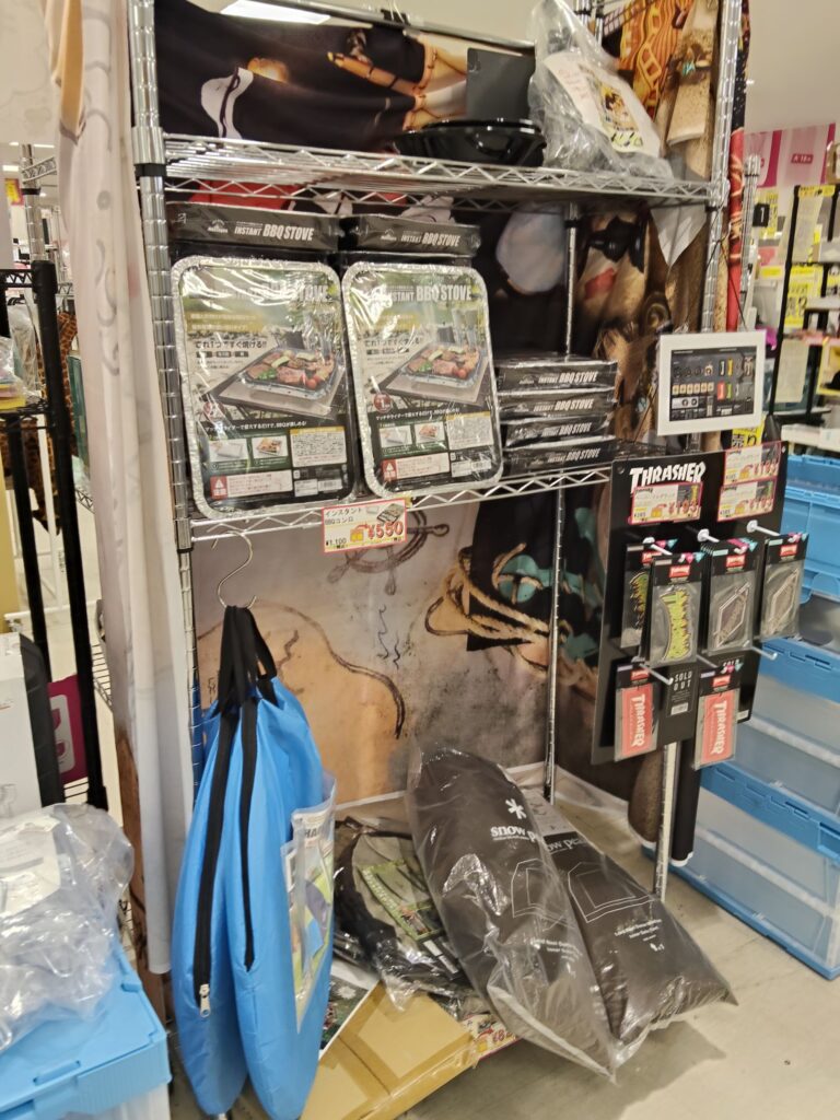 キャンプ用品もちょっとだけありました。テントもあるやん!