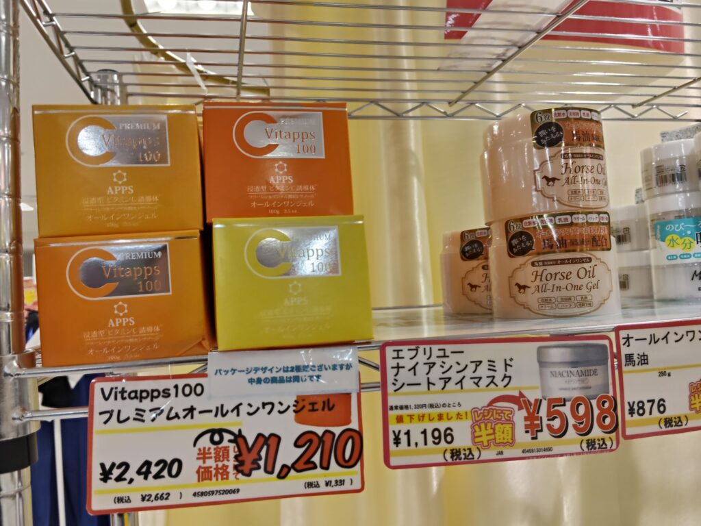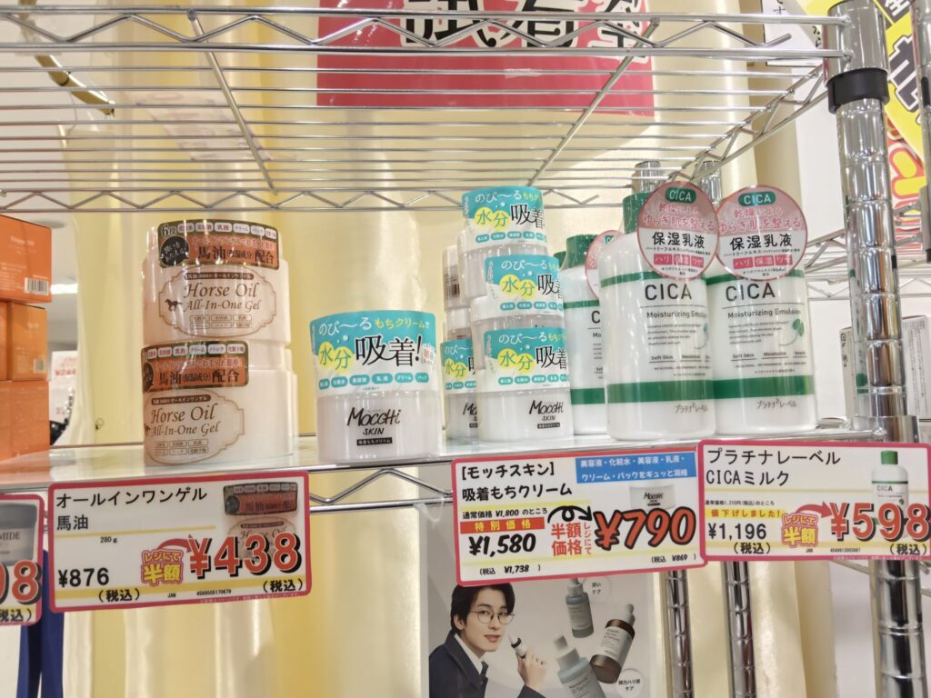 クリームとかサポーターとかティッシュとか、ドラッグストア感のある商品たち