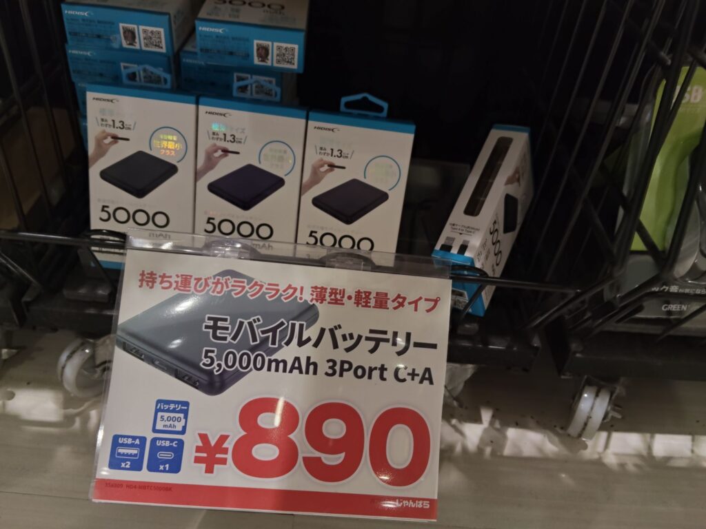 秋葉原感あるお値段でケーブルやモバイルバッテリーが購入できます。