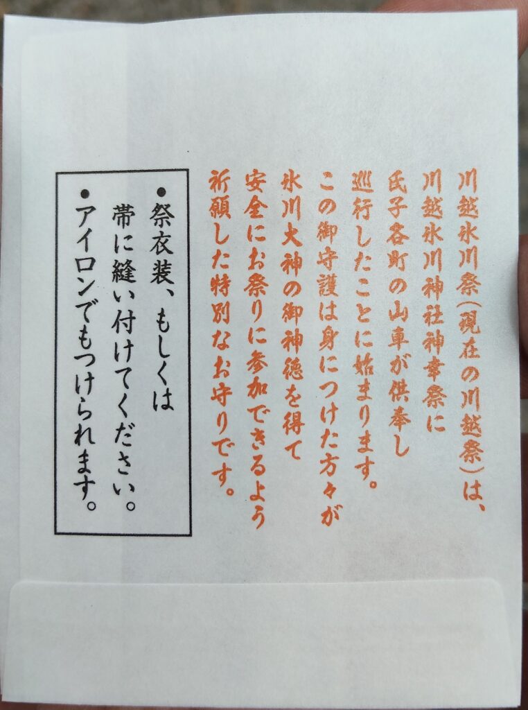 「安全にお祭りに参加できるように祈願されたお守り」とのことです。