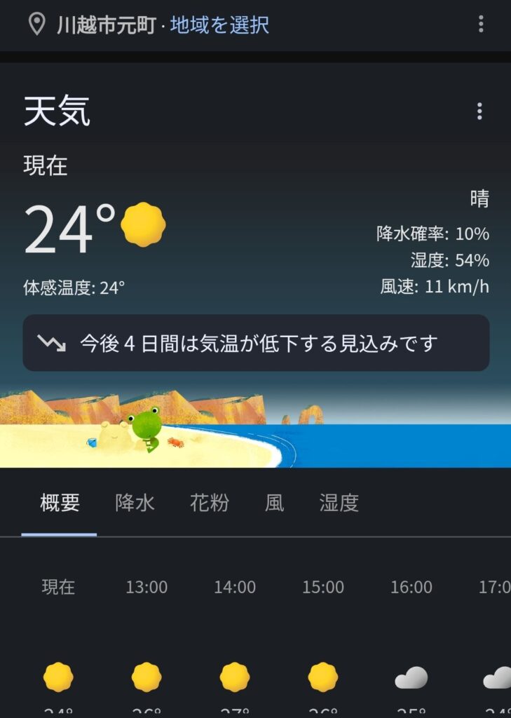 埼玉県川越市元町は現在24℃。