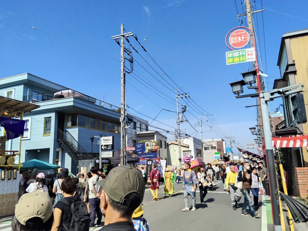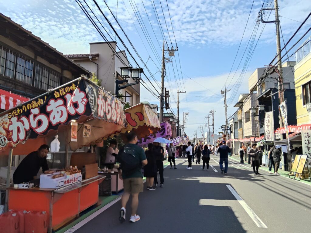 川越まつりの日は大規模に車の制限がかけられていて、広い道が歩行者天国となっています。