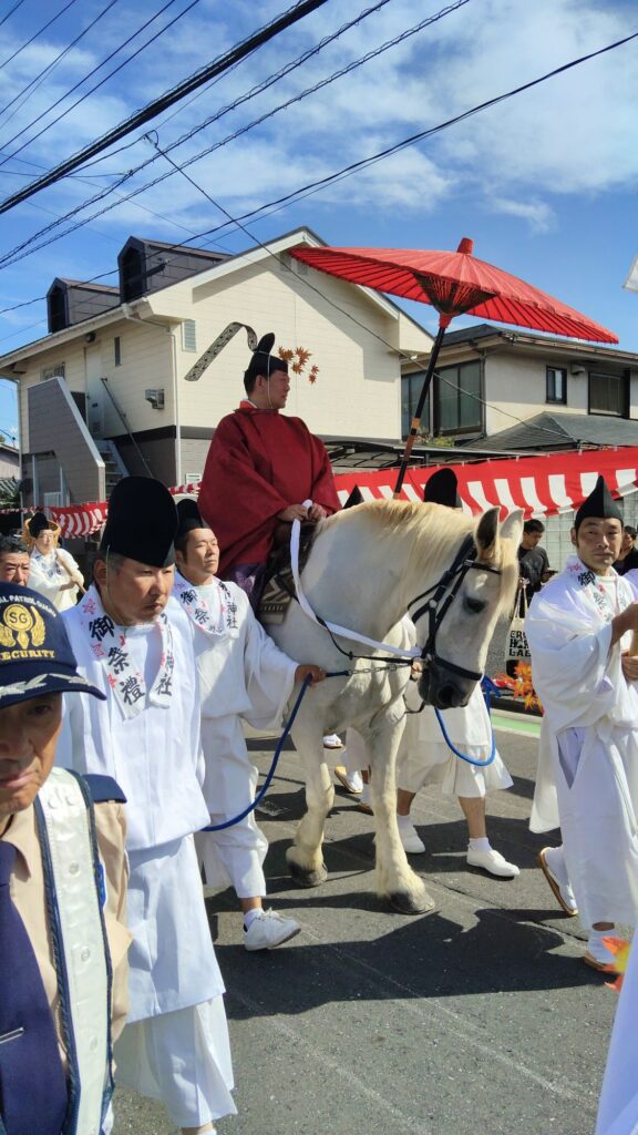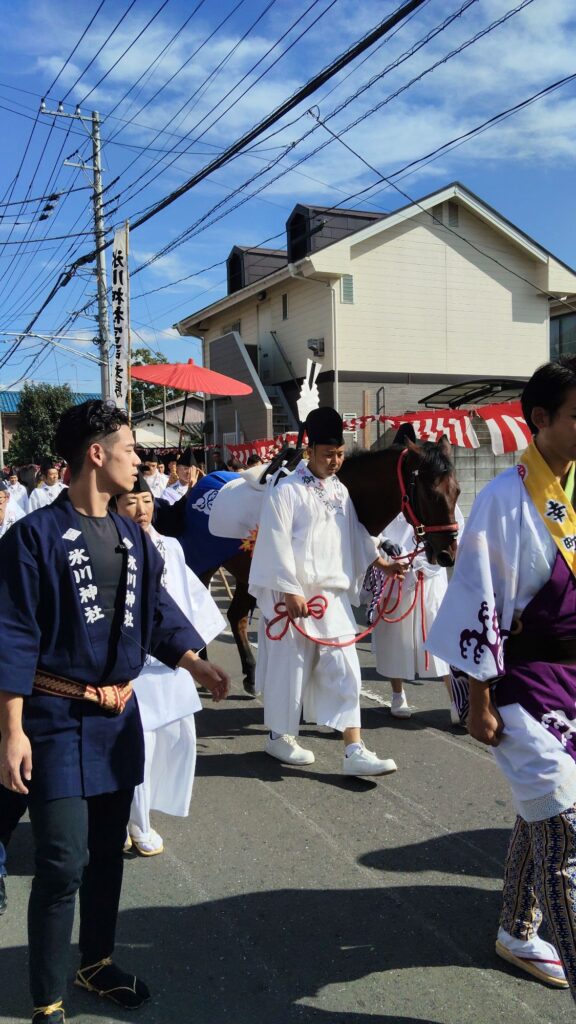 お神輿と2頭の馬