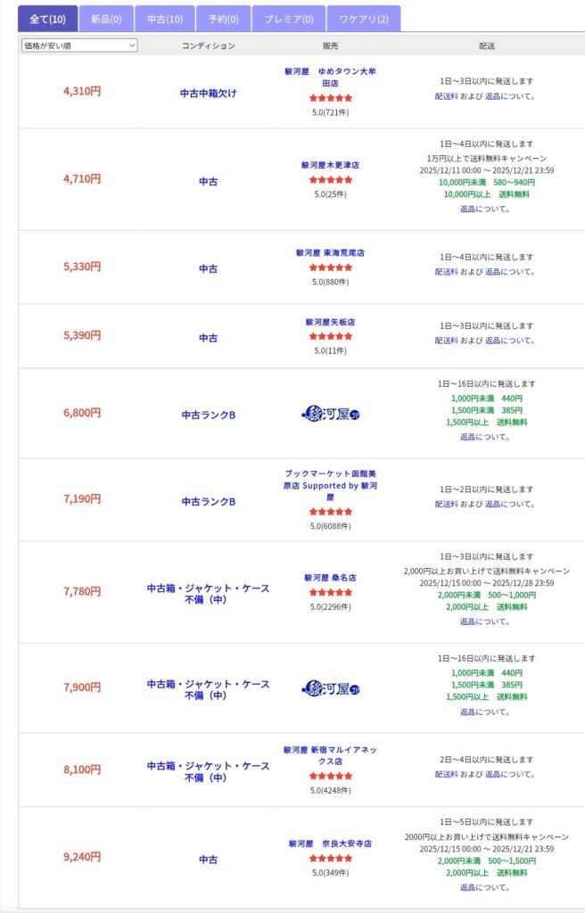 駿河屋でもこんな価格帯↓