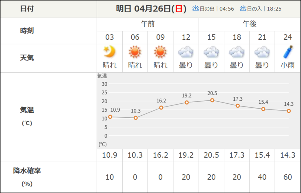 情報元:立川市の3時間天気 – 日本気象協会 tenki.jp