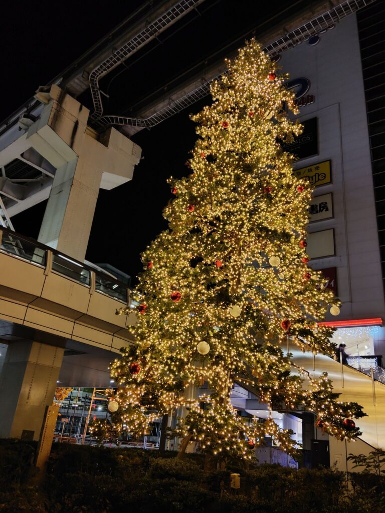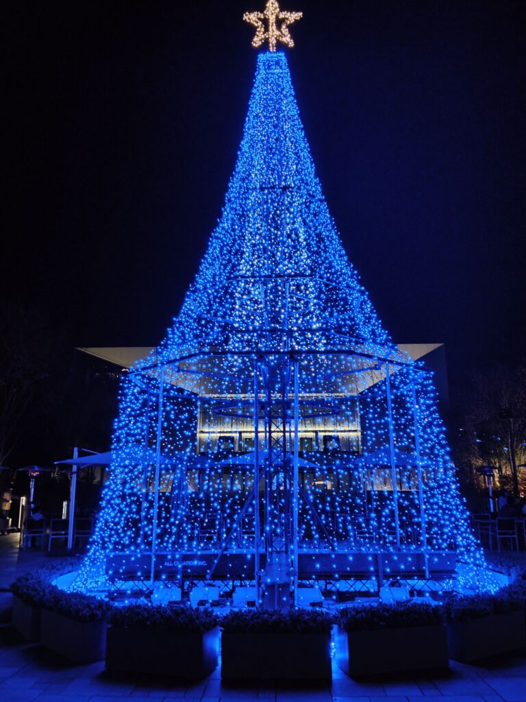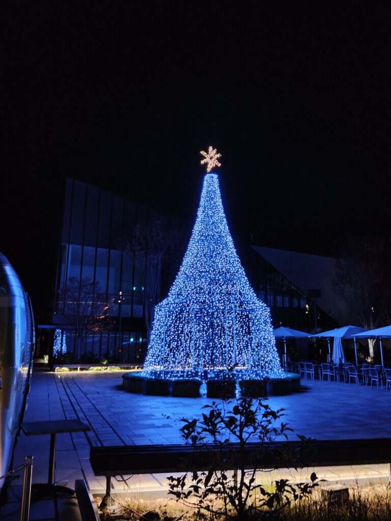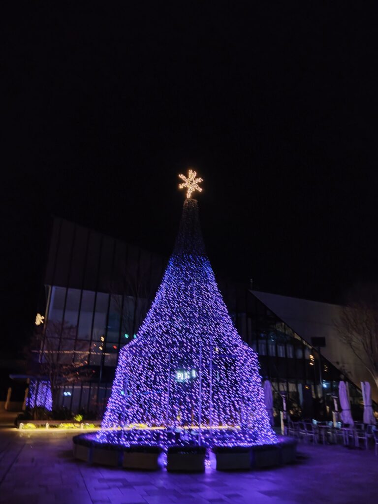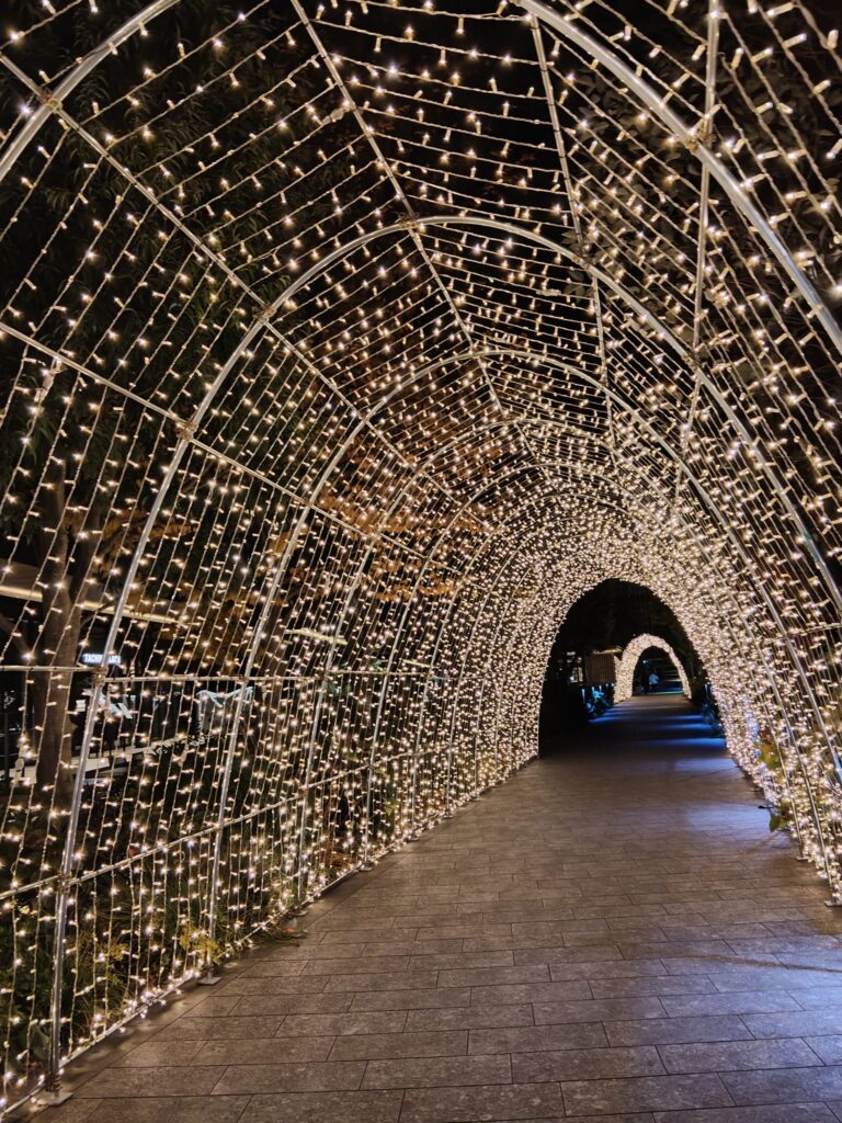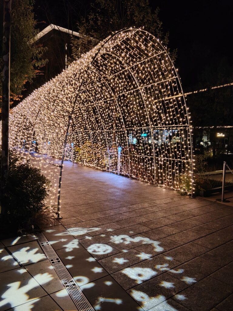 夜はライトアップされたトンネルと、今時期はクリスマスツリーを形どったイルミネーションがそびえ立っています!