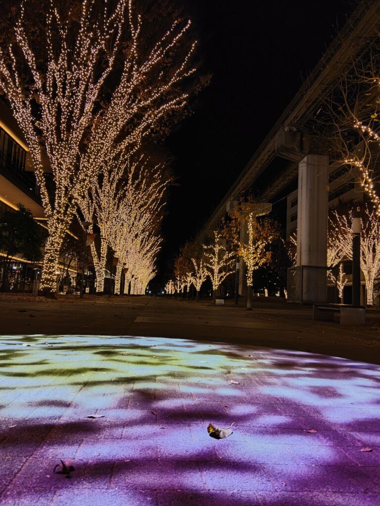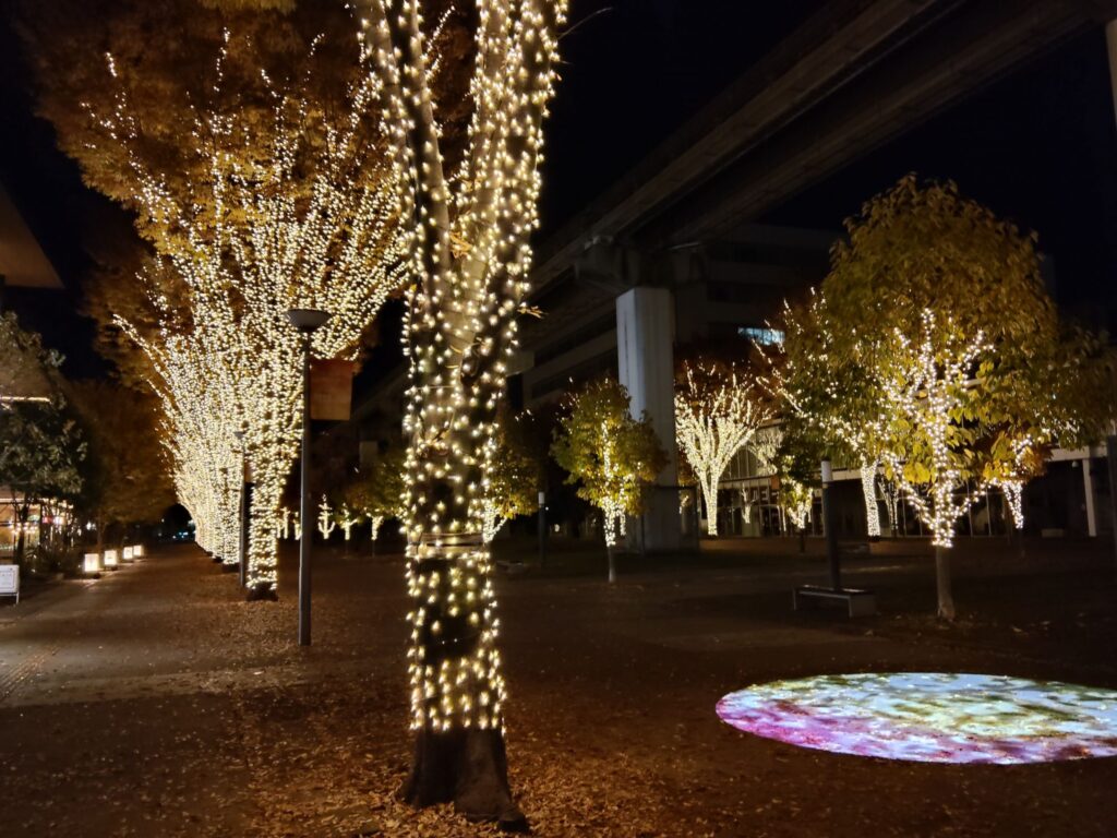 このイルミネーションは2026年1月18日まで楽しめます! (※落ち葉は清掃され、今は非常に綺麗な状態です。)
